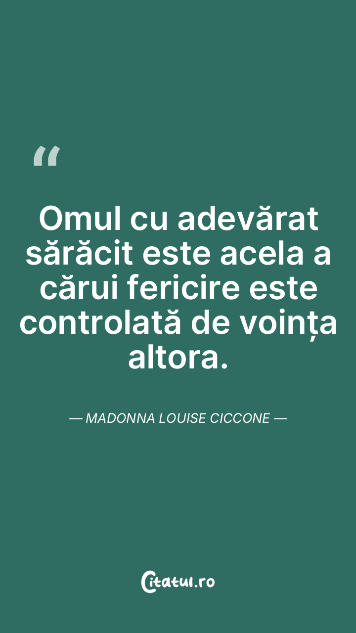 Omul cu adevărat sărăcit este acela a cărui fericire este controlată de voința altora. Madonna Louise Ciccone
