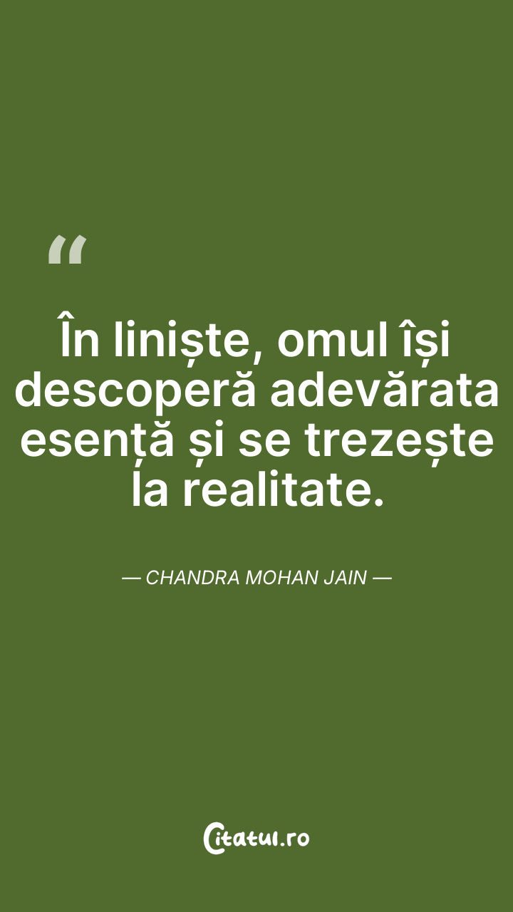 În liniște, omul își descoperă adevărata esență și se trezește la realitate. Chandra Mohan Jain