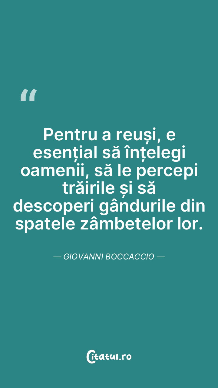 Pentru a reuși, e esențial să înțelegi oamenii, să le percepi trăirile și să descoperi gândurile din spatele zâmbetelor lor. Giovanni Boccaccio