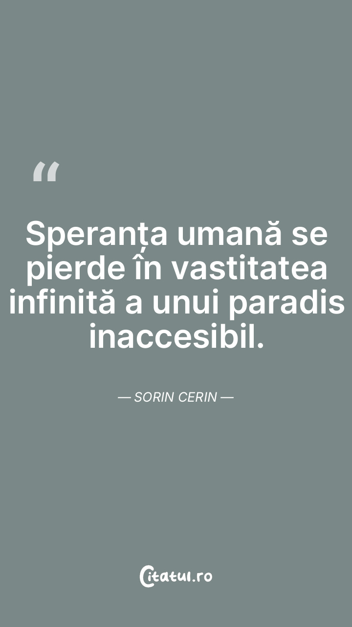Speranța umană se pierde în vastitatea infinită a unui paradis inaccesibil. Sorin Cerin