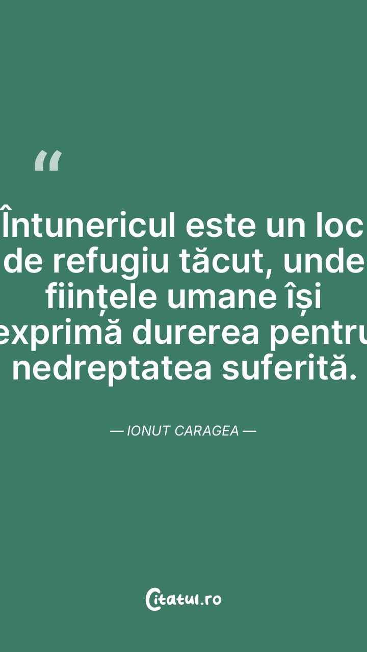 Întunericul este un loc de refugiu tăcut, unde ființele umane își exprimă durerea pentru nedreptatea suferită. Ionut Caragea