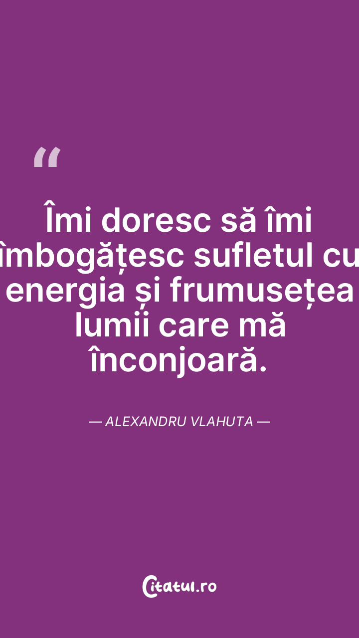 Îmi doresc să îmi îmbogățesc sufletul cu energia și frumusețea lumii care mă înconjoară. Alexandru Vlahuta