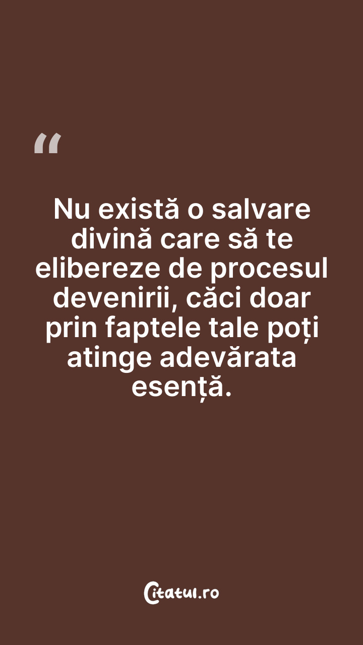 Nu există o salvare divină care să te elibereze de procesul devenirii, căci doar prin faptele tale poți atinge adevărata esență.