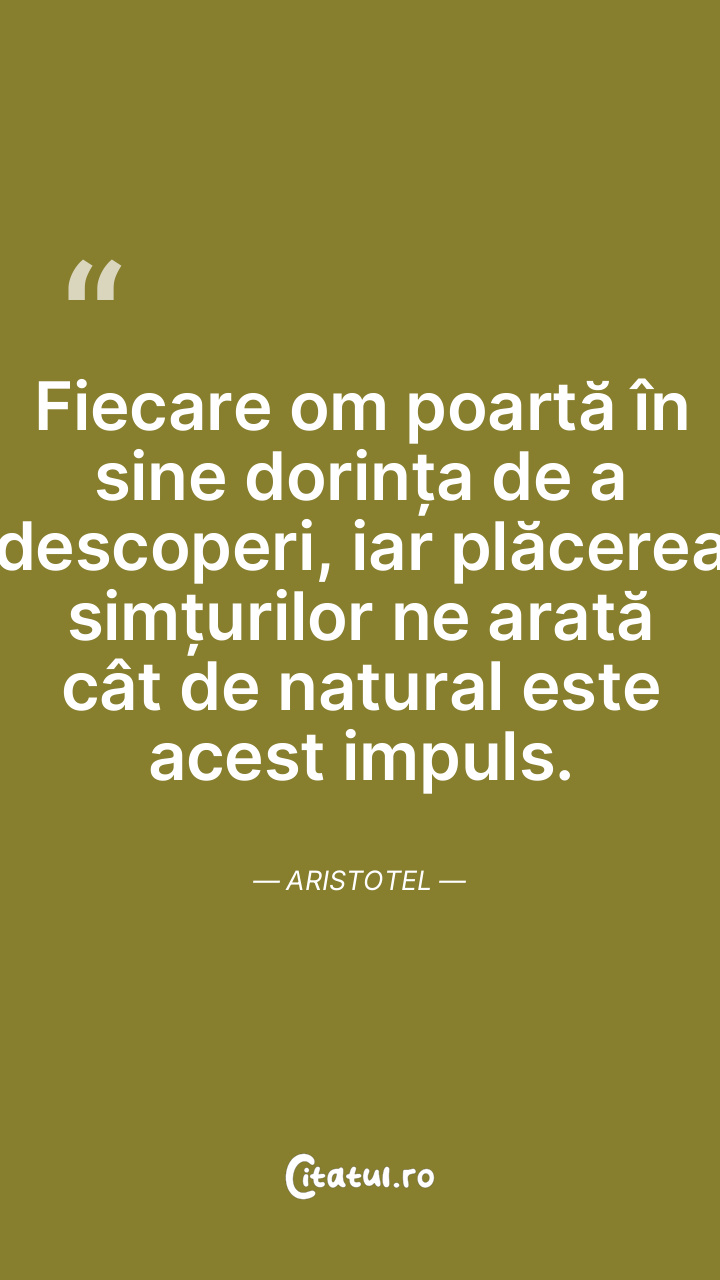 Fiecare om poartă în sine dorința de a descoperi, iar plăcerea simțurilor ne arată cât de natural este acest impuls. Aristotel