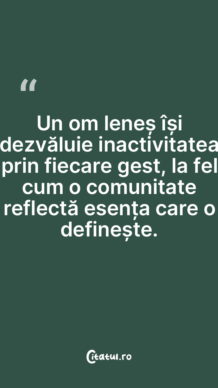 Un om leneș își dezvăluie inactivitatea prin fiecare gest, la fel cum o comunitate reflectă esența care o definește.