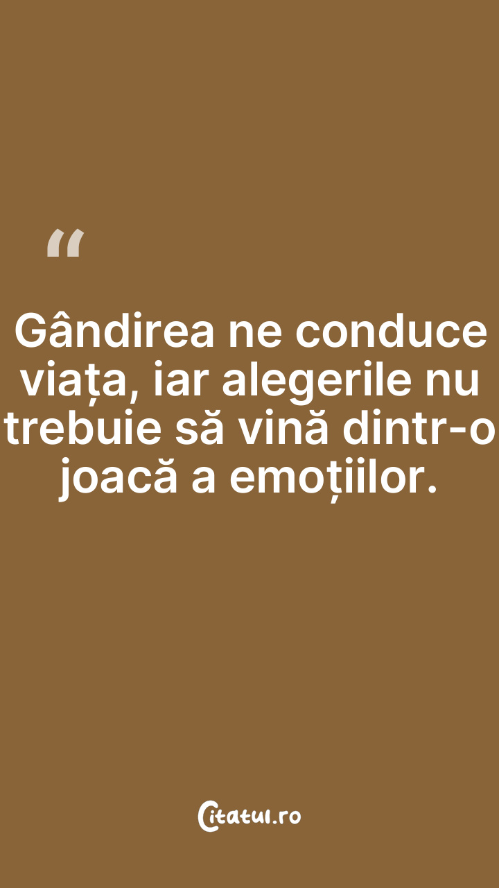 Gândirea ne conduce viața, iar alegerile nu trebuie să vină dintr-o joacă a emoțiilor.
