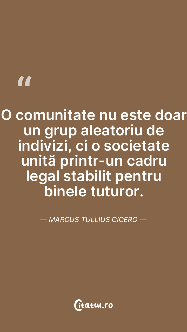 O comunitate nu este doar un grup aleatoriu de indivizi, ci o societate unită printr-un cadru legal stabilit pentru binele tuturor. Marcus Tullius Cicero