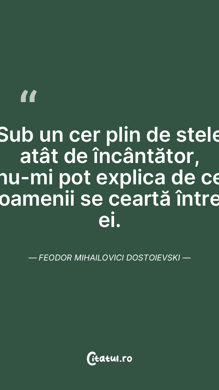 Sub un cer plin de stele atât de încântător, nu-mi pot explica de ce oamenii se ceartă între ei. Feodor Mihailovici Dostoievski