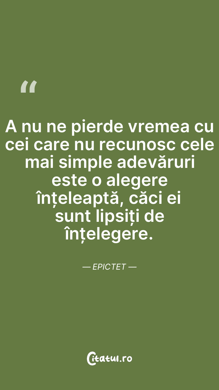 A nu ne pierde vremea cu cei care nu recunosc cele mai simple adevăruri este o alegere înțeleaptă, căci ei sunt lipsiți de înțelegere. Epictet