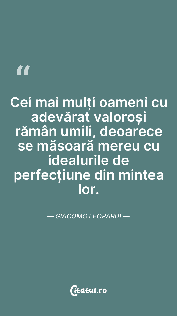 Cei mai mulți oameni cu adevărat valoroși rămân umili, deoarece se măsoară mereu cu idealurile de perfecțiune din mintea lor. Giacomo Leopardi