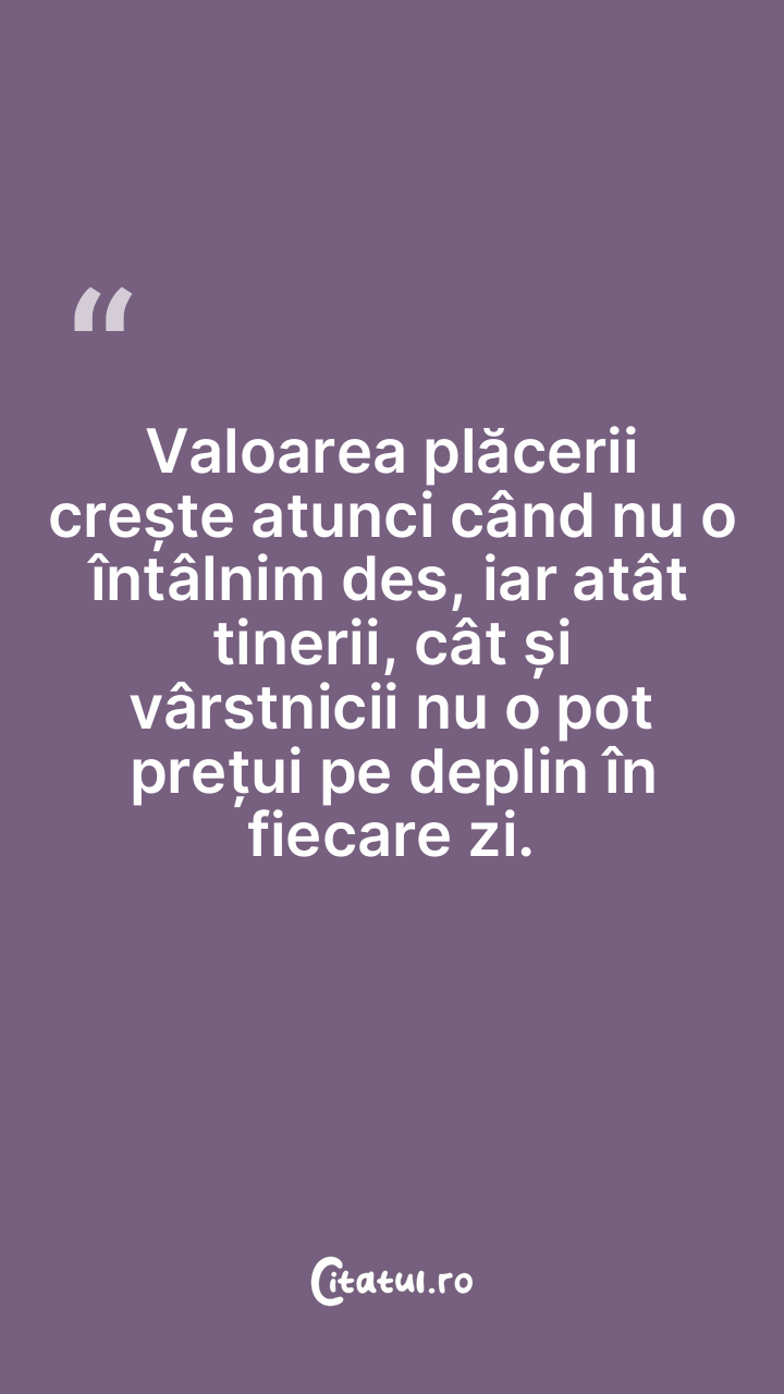 Valoarea plăcerii crește atunci când nu o întâlnim des, iar atât tinerii, cât și vârstnicii nu o pot prețui pe deplin în fiecare zi.