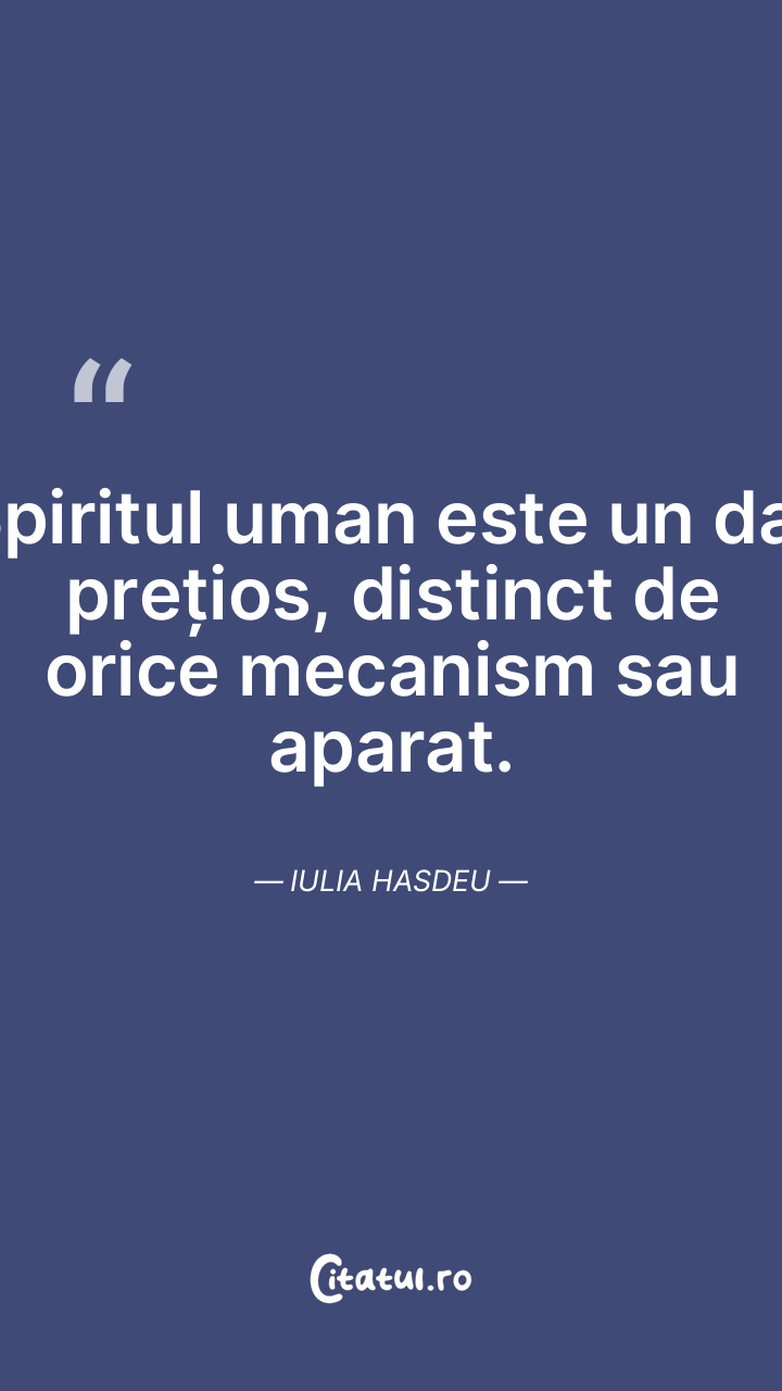 Spiritul uman este un dar prețios, distinct de orice mecanism sau aparat. Iulia Hasdeu