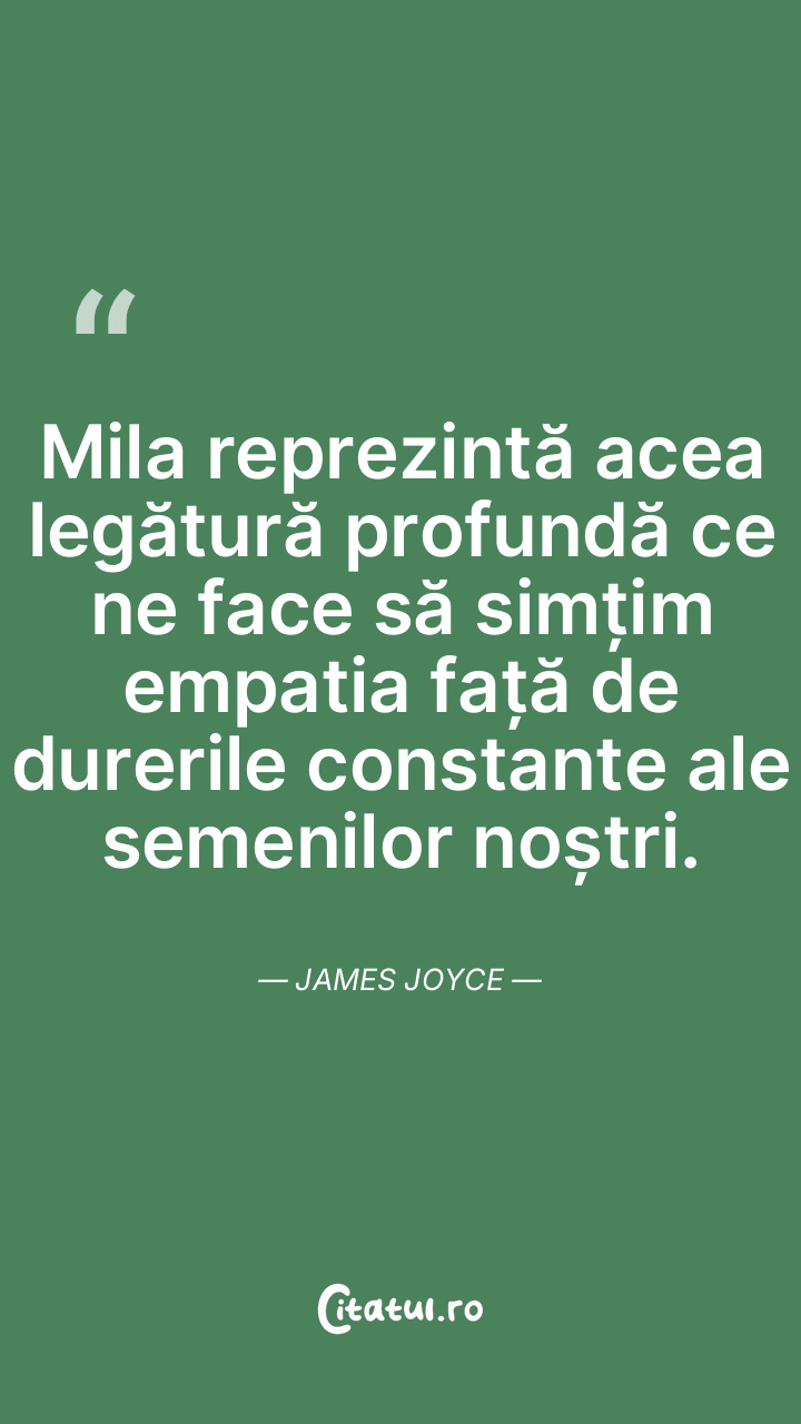 Mila reprezintă acea legătură profundă ce ne face să simțim empatia față de durerile constante ale semenilor noștri. James Joyce