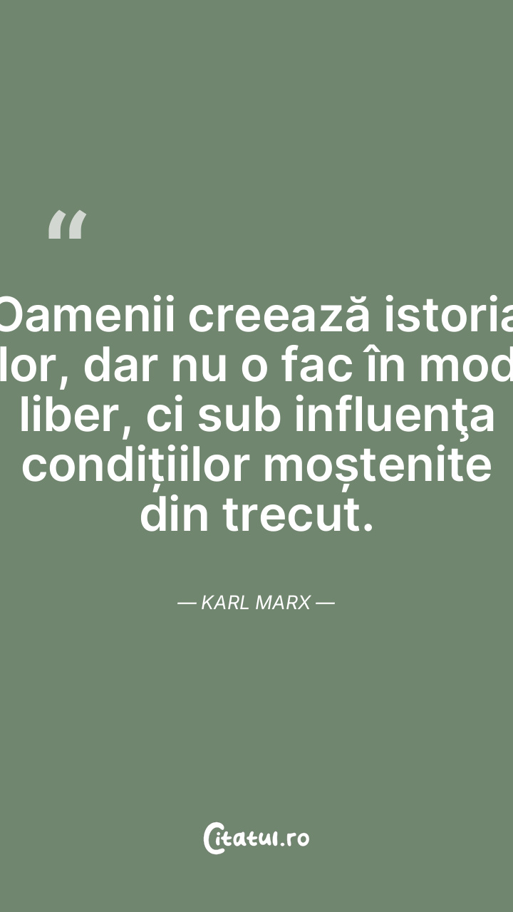 Oamenii creează istoria lor, dar nu o fac în mod liber, ci sub influenţa condițiilor moștenite din trecut. Karl Marx
