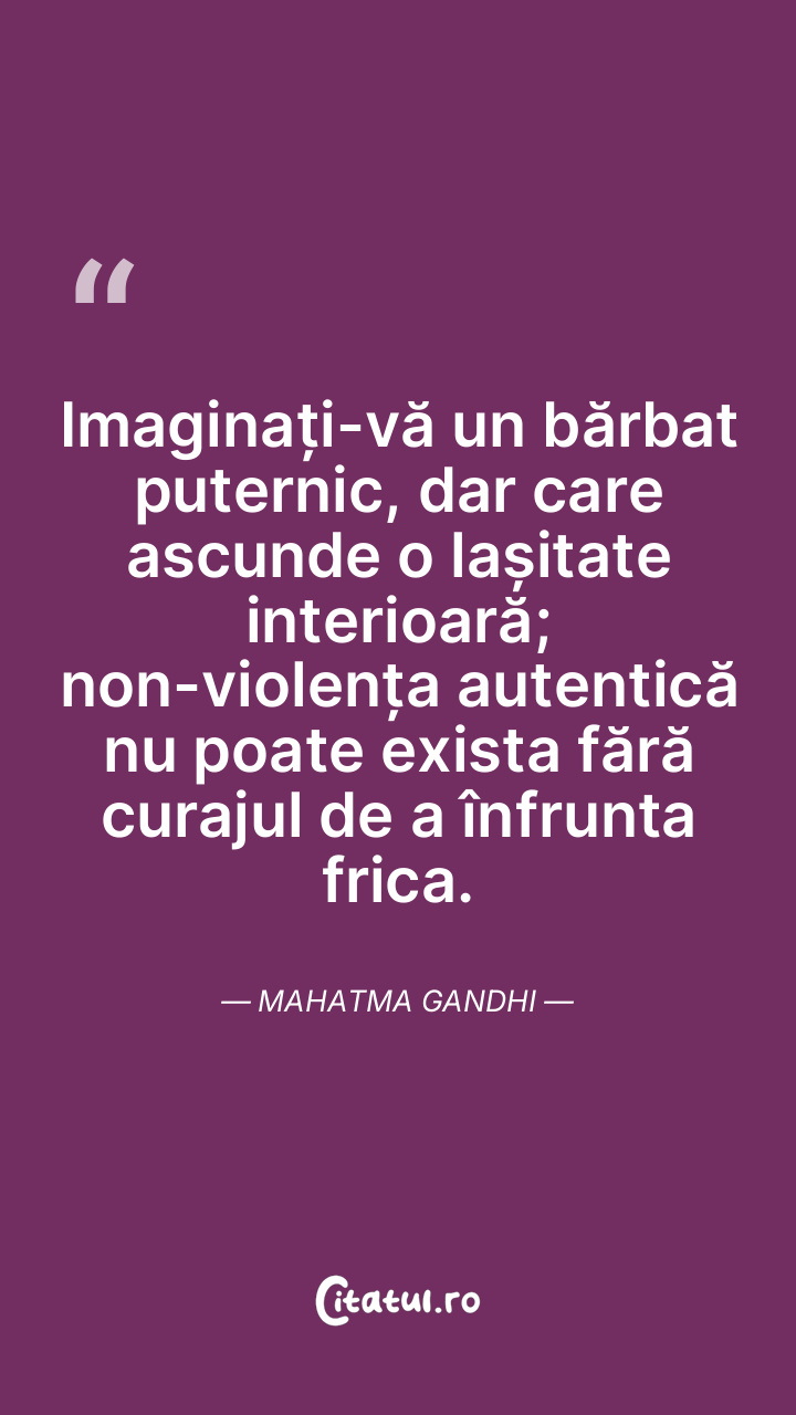 Imaginați-vă un bărbat puternic, dar care ascunde o lașitate interioară; non-violența autentică nu poate exista fără curajul de a înfrunta frica. Mahatma Gandhi