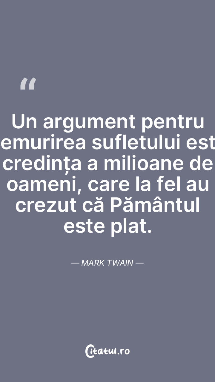 Un argument pentru nemurirea sufletului este credința a milioane de oameni, care la fel au crezut că Pământul este plat. Mark Twain