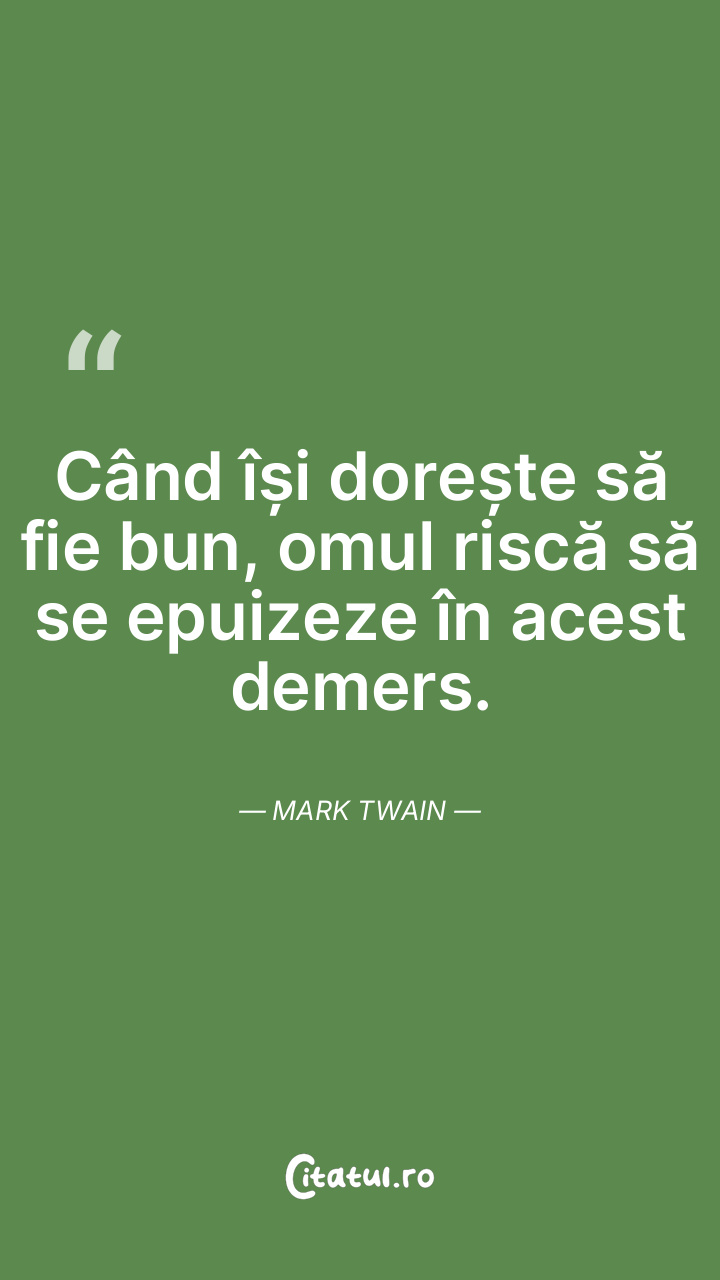 Când își dorește să fie bun, omul riscă să se epuizeze în acest demers. Mark Twain