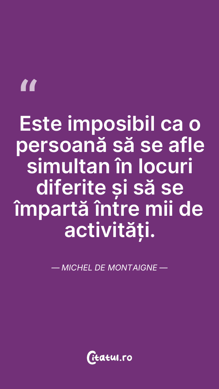 Este imposibil ca o persoană să se afle simultan în locuri diferite și să se împartă între mii de activități. Michel de Montaigne