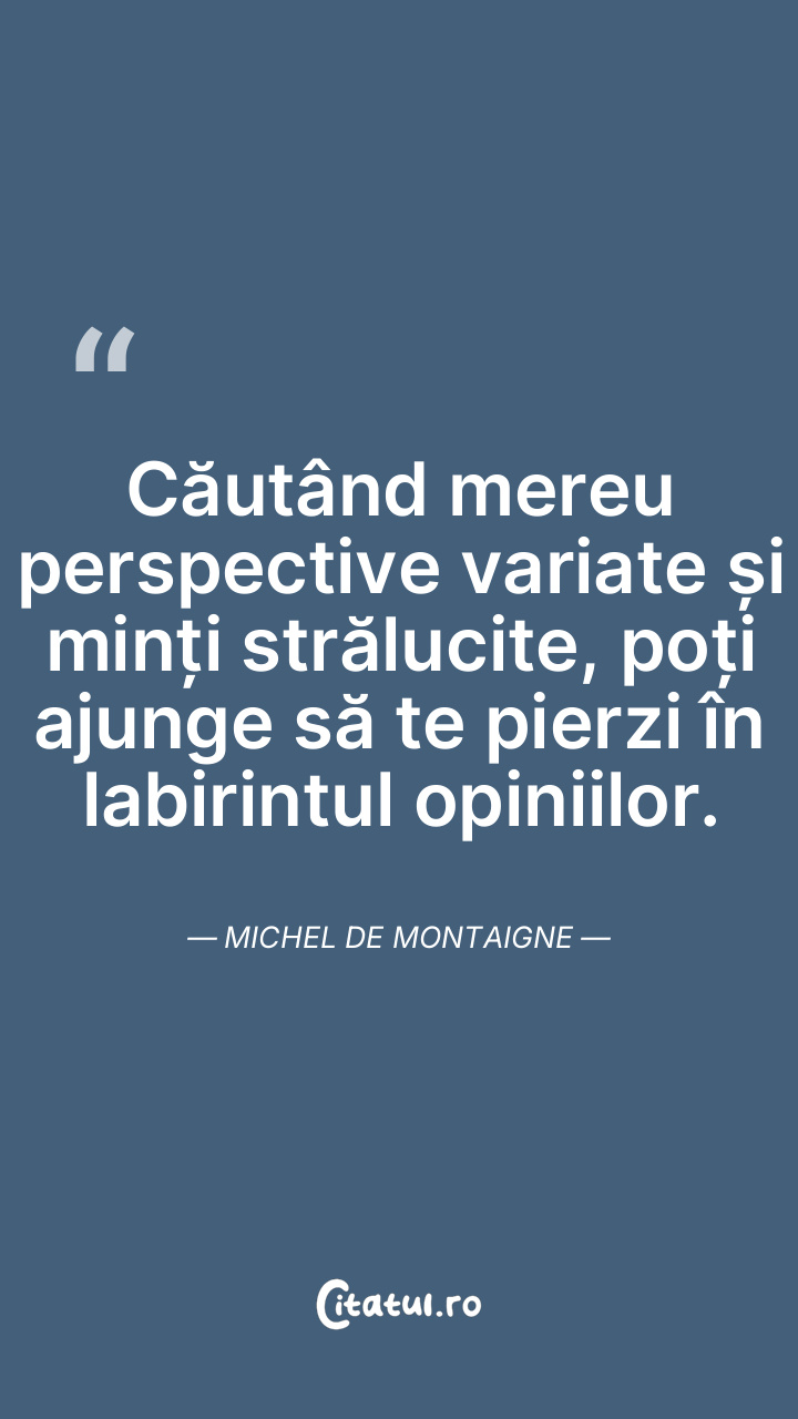 Căutând mereu perspective variate și minți strălucite, poți ajunge să te pierzi în labirintul opiniilor. Michel de Montaigne
