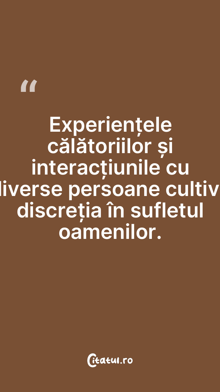 Experiențele călătoriilor și interacțiunile cu diverse persoane cultivă discreția în sufletul oamenilor.