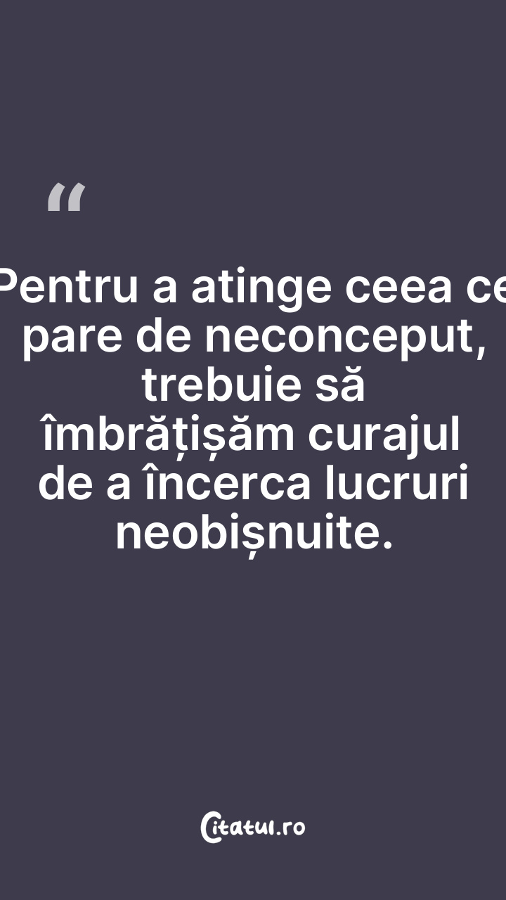 Pentru a atinge ceea ce pare de neconceput, trebuie să îmbrățișăm curajul de a încerca lucruri neobișnuite.