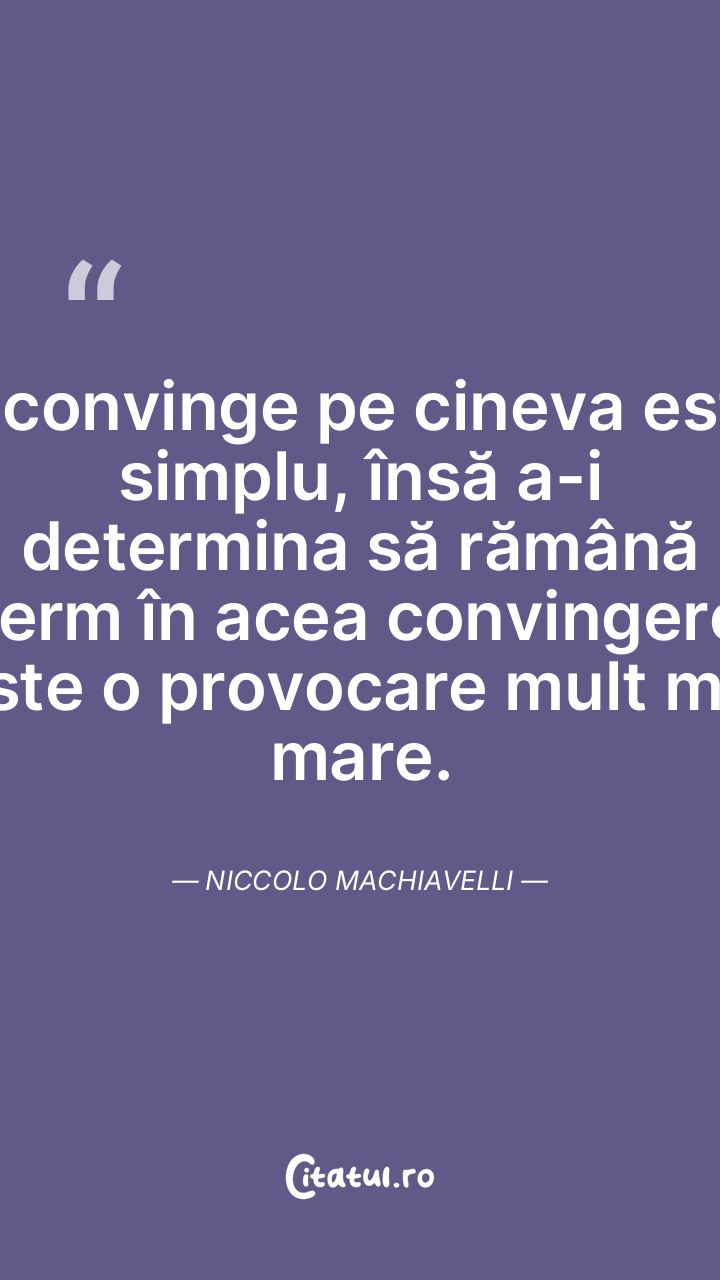 A convinge pe cineva este simplu, însă a-i determina să rămână ferm în acea convingere este o provocare mult mai mare. Niccolo Machiavelli