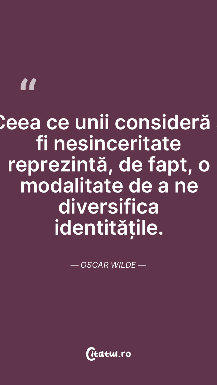 Ceea ce unii consideră a fi nesinceritate reprezintă, de fapt, o modalitate de a ne diversifica identitățile. Oscar Wilde