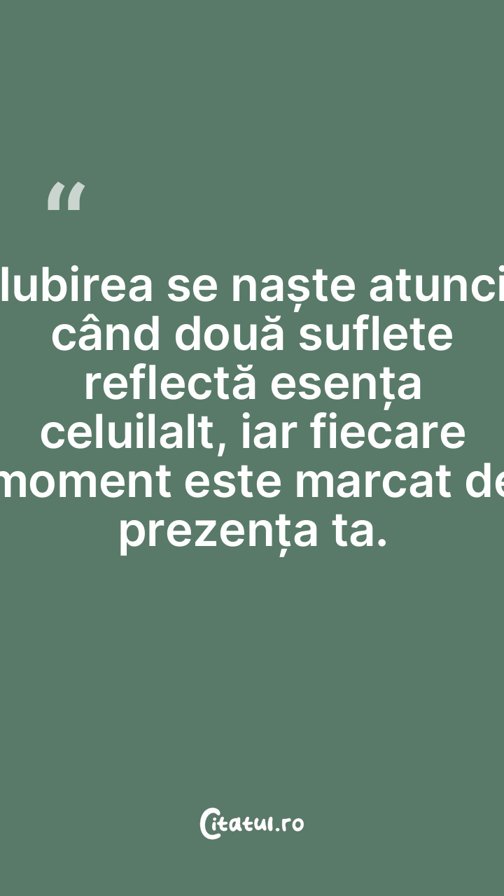 Iubirea se naște atunci când două suflete reflectă esența celuilalt, iar fiecare moment este marcat de prezența ta.
