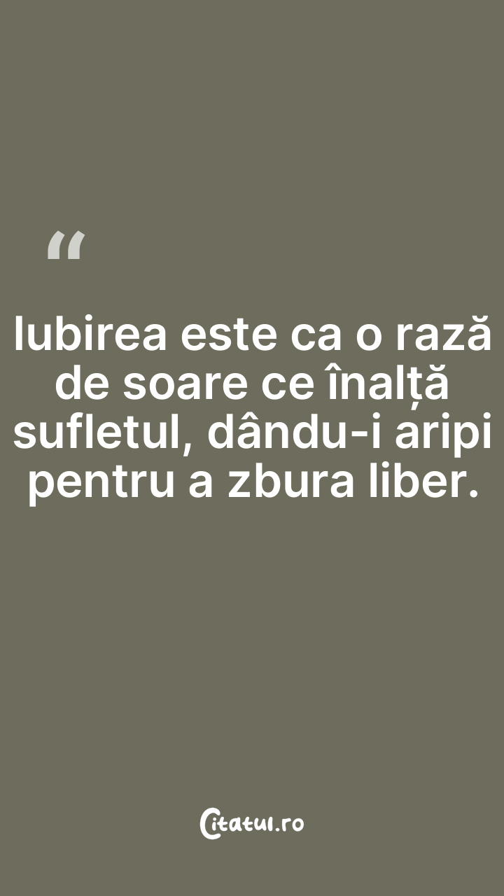 Iubirea este ca o rază de soare ce înalță sufletul, dându-i aripi pentru a zbura liber.