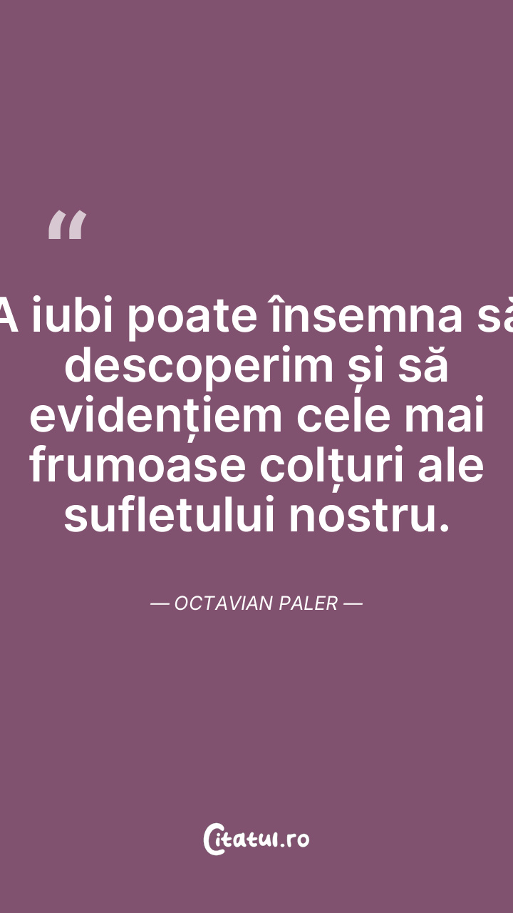 A iubi poate însemna să descoperim și să evidențiem cele mai frumoase colțuri ale sufletului nostru. Octavian Paler