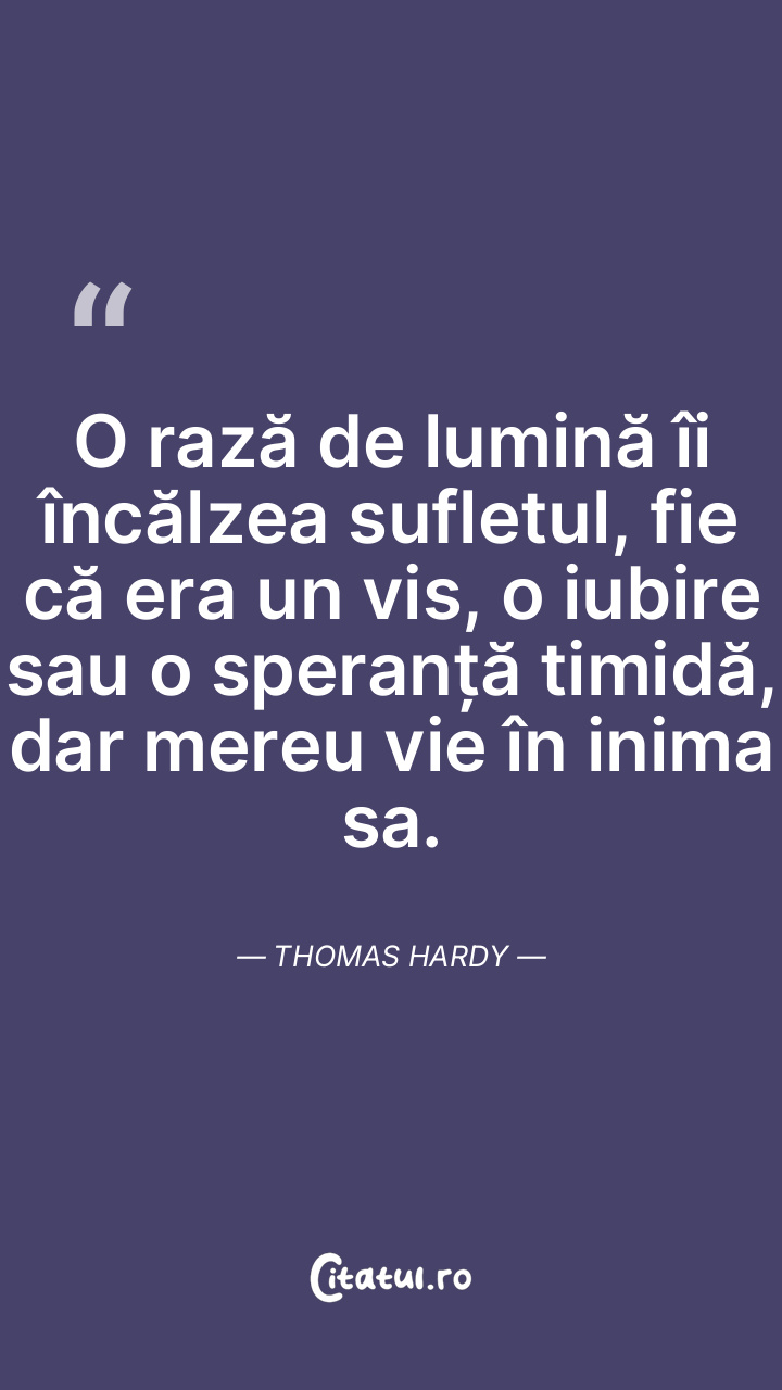 O rază de lumină îi încălzea sufletul, fie că era un vis, o iubire sau o speranță timidă, dar mereu vie în inima sa. Thomas Hardy
