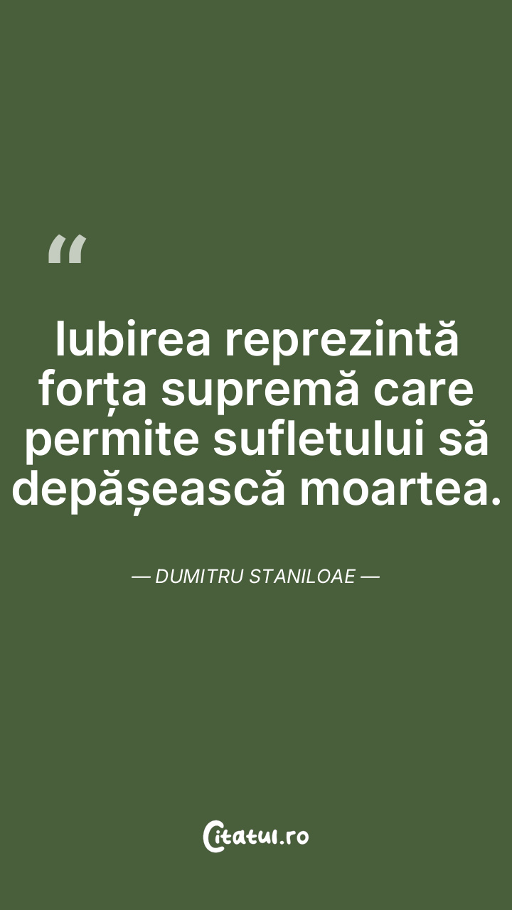 Iubirea reprezintă forța supremă care permite sufletului să depășească moartea. Dumitru Staniloae