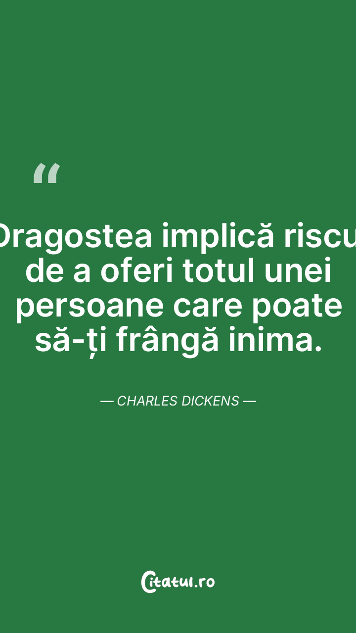 Dragostea implică riscul de a oferi totul unei persoane care poate să-ți frângă inima. Charles Dickens