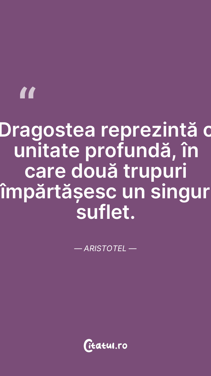 Dragostea reprezintă o unitate profundă, în care două trupuri împărtășesc un singur suflet. Aristotel