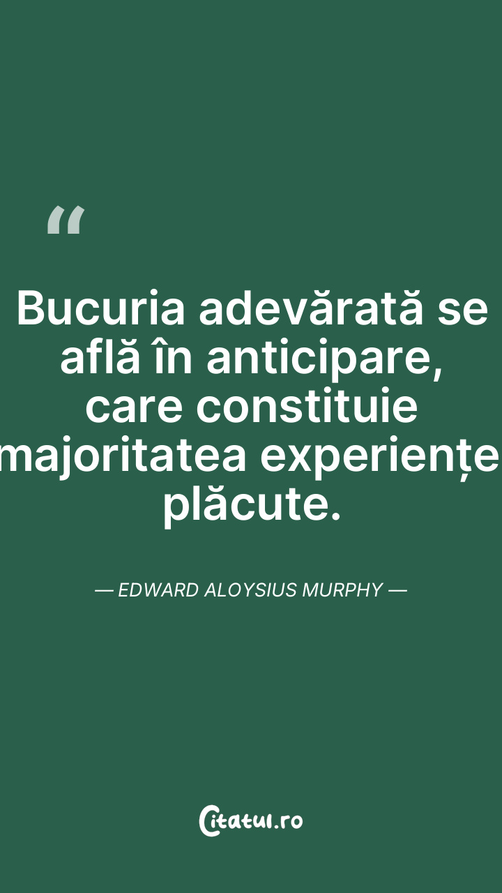 Bucuria adevărată se află în anticipare, care constituie majoritatea experienței plăcute. Edward Aloysius Murphy