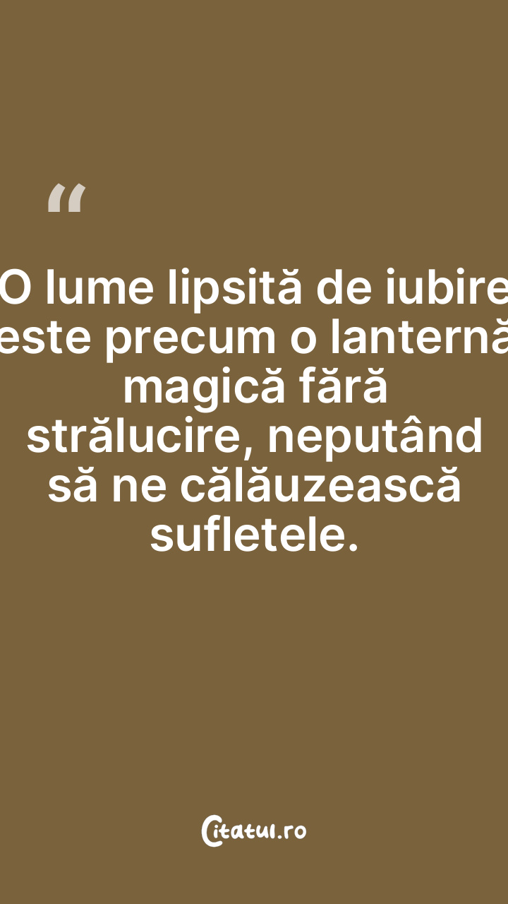 O lume lipsită de iubire este precum o lanternă magică fără strălucire, neputând să ne călăuzească sufletele.