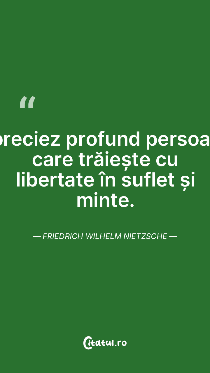 Apreciez profund persoana care trăiește cu libertate în suflet și minte. Friedrich Wilhelm Nietzsche