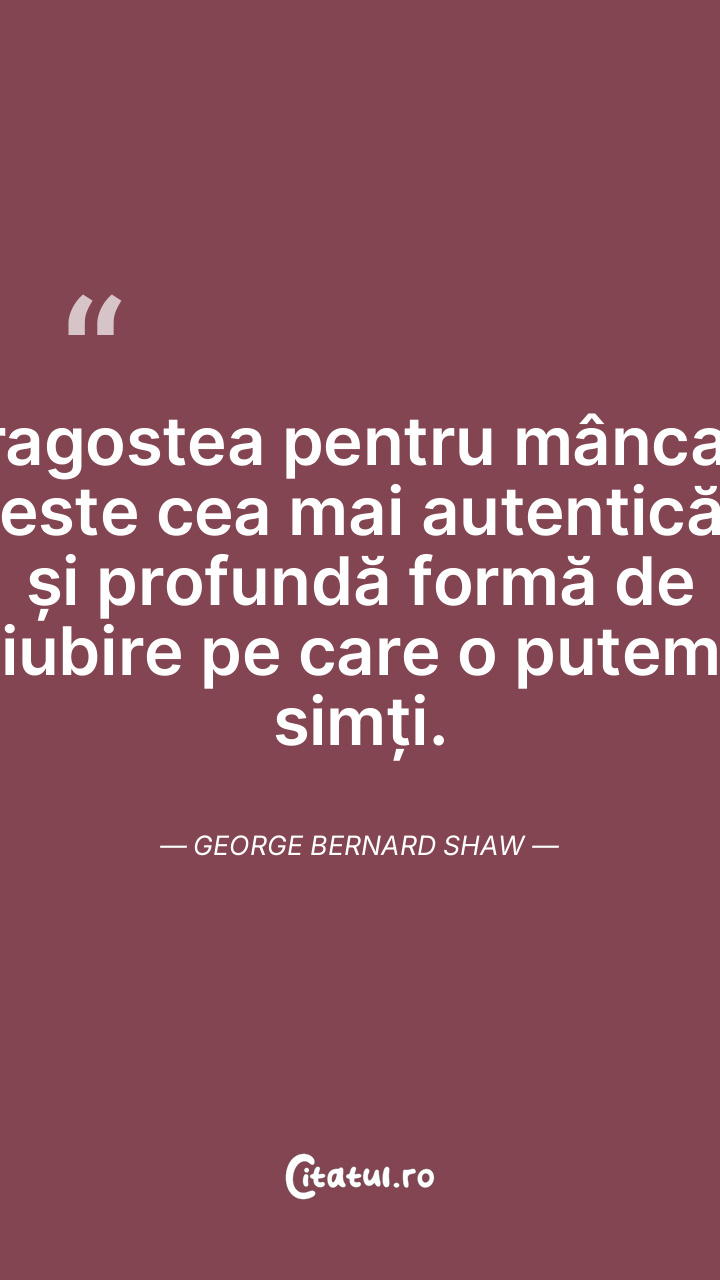 Dragostea pentru mâncare este cea mai autentică și profundă formă de iubire pe care o putem simți. George Bernard Shaw