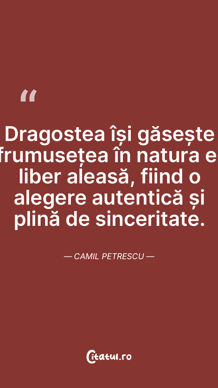 Dragostea își găsește frumusețea în natura ei liber aleasă, fiind o alegere autentică și plină de sinceritate. Camil Petrescu