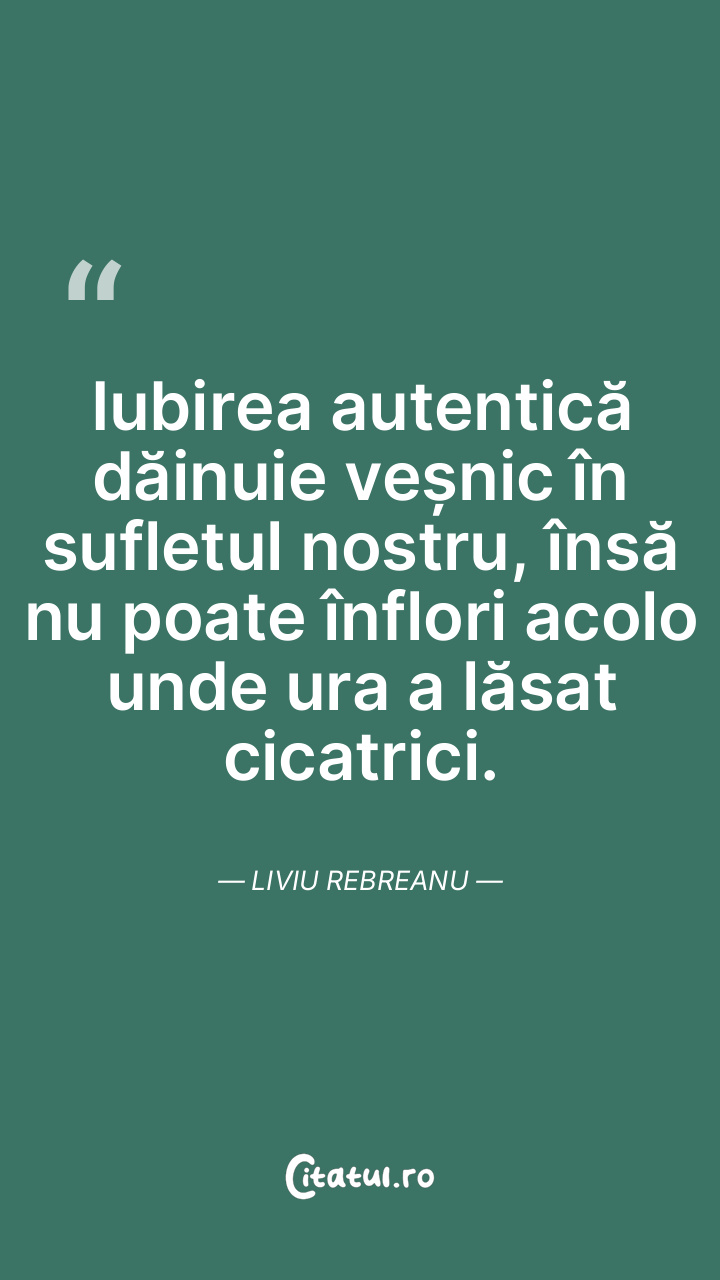 Iubirea autentică dăinuie veșnic în sufletul nostru, însă nu poate înflori acolo unde ura a lăsat cicatrici. Liviu Rebreanu