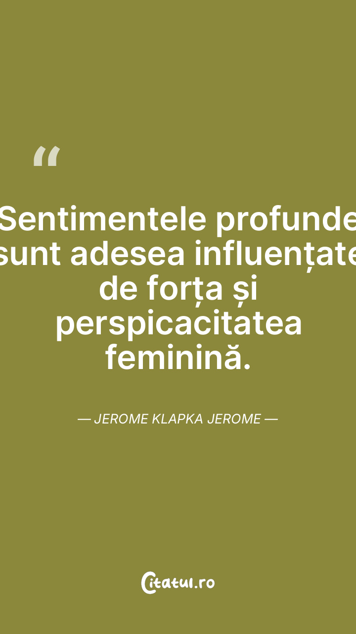 Sentimentele profunde sunt adesea influențate de forța și perspicacitatea feminină. Jerome Klapka Jerome