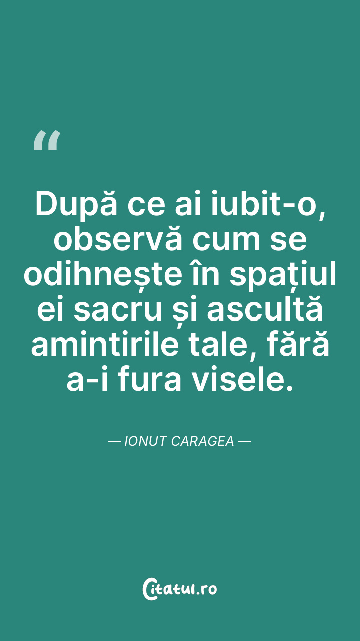 După ce ai iubit-o, observă cum se odihnește în spațiul ei sacru și ascultă amintirile tale, fără a-i fura visele. Ionut Caragea