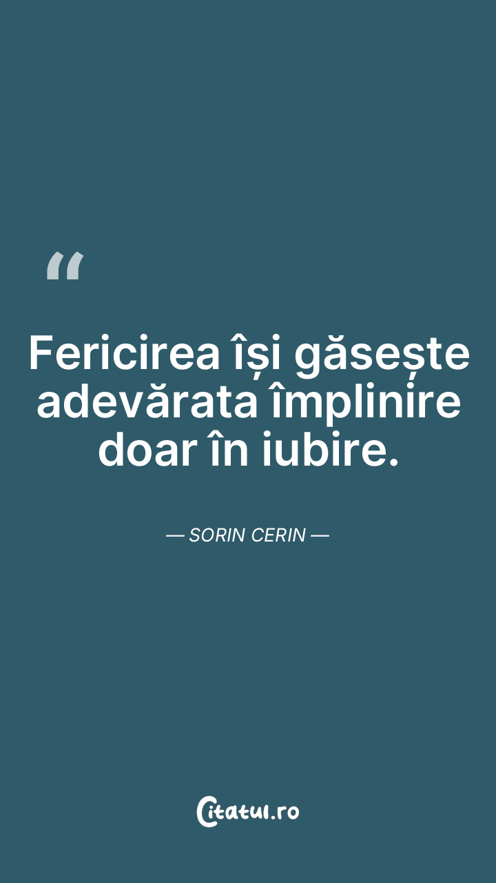 Fericirea își găsește adevărata împlinire doar în iubire. Sorin Cerin