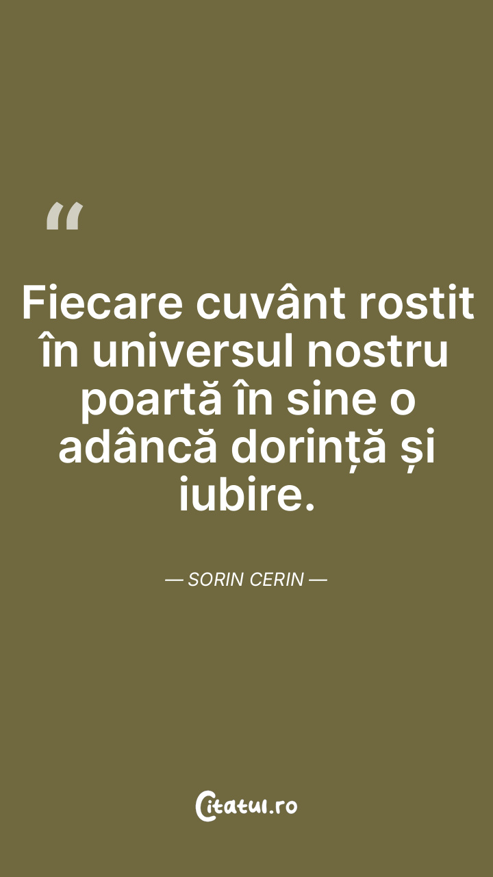 Fiecare cuvânt rostit în universul nostru poartă în sine o adâncă dorință și iubire. Sorin Cerin