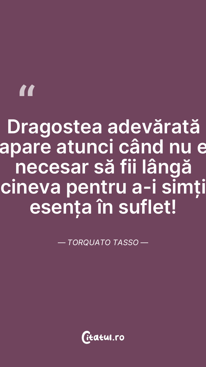 Dragostea adevărată apare atunci când nu e necesar să fii lângă cineva pentru a-i simți esența în suflet! Torquato Tasso