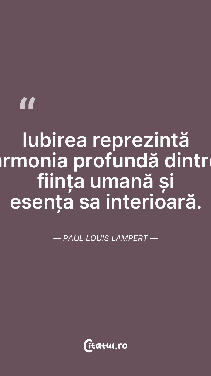 Iubirea reprezintă armonia profundă dintre ființa umană și esența sa interioară. Paul Louis Lampert