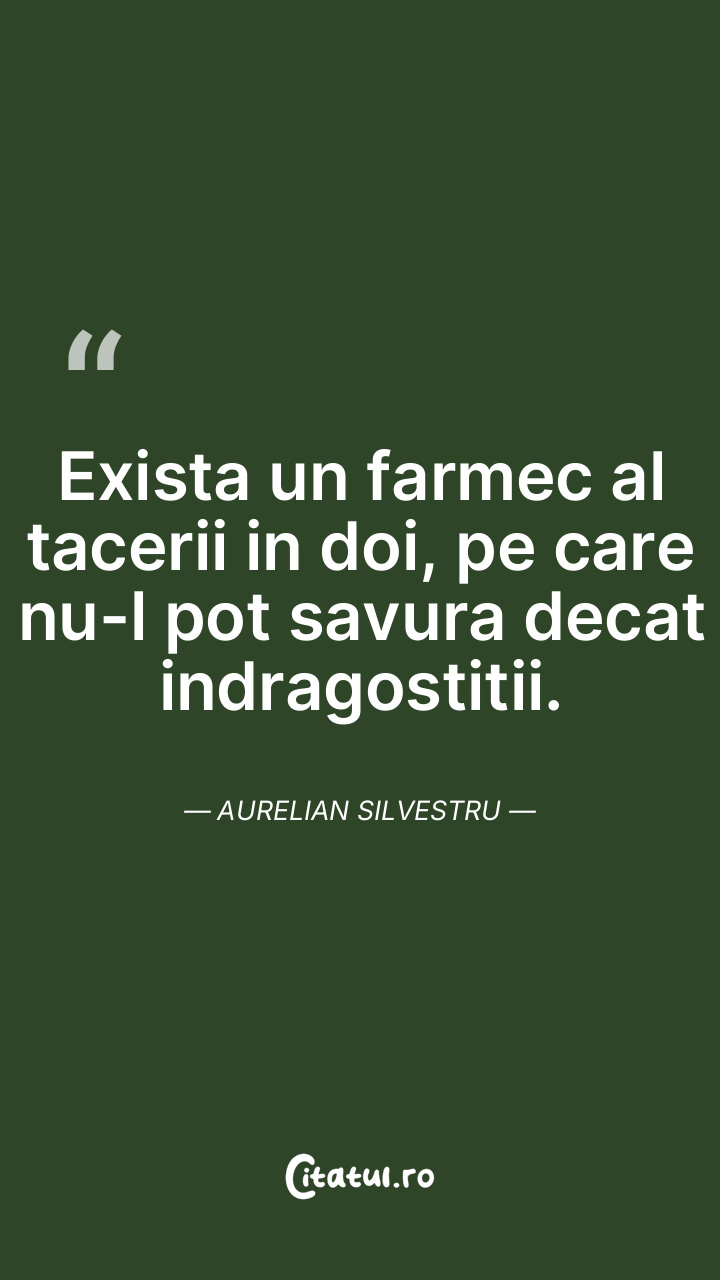 Exista un farmec al tacerii in doi, pe care nu-l pot savura decat indragostitii. Aurelian Silvestru