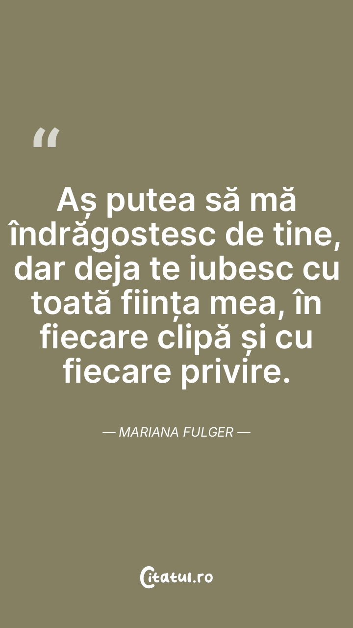 Aș putea să mă îndrăgostesc de tine, dar deja te iubesc cu toată ființa mea, în fiecare clipă și cu fiecare privire. Mariana Fulger