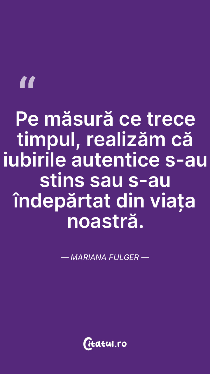 Pe măsură ce trece timpul, realizăm că iubirile autentice s-au stins sau s-au îndepărtat din viața noastră. Mariana Fulger