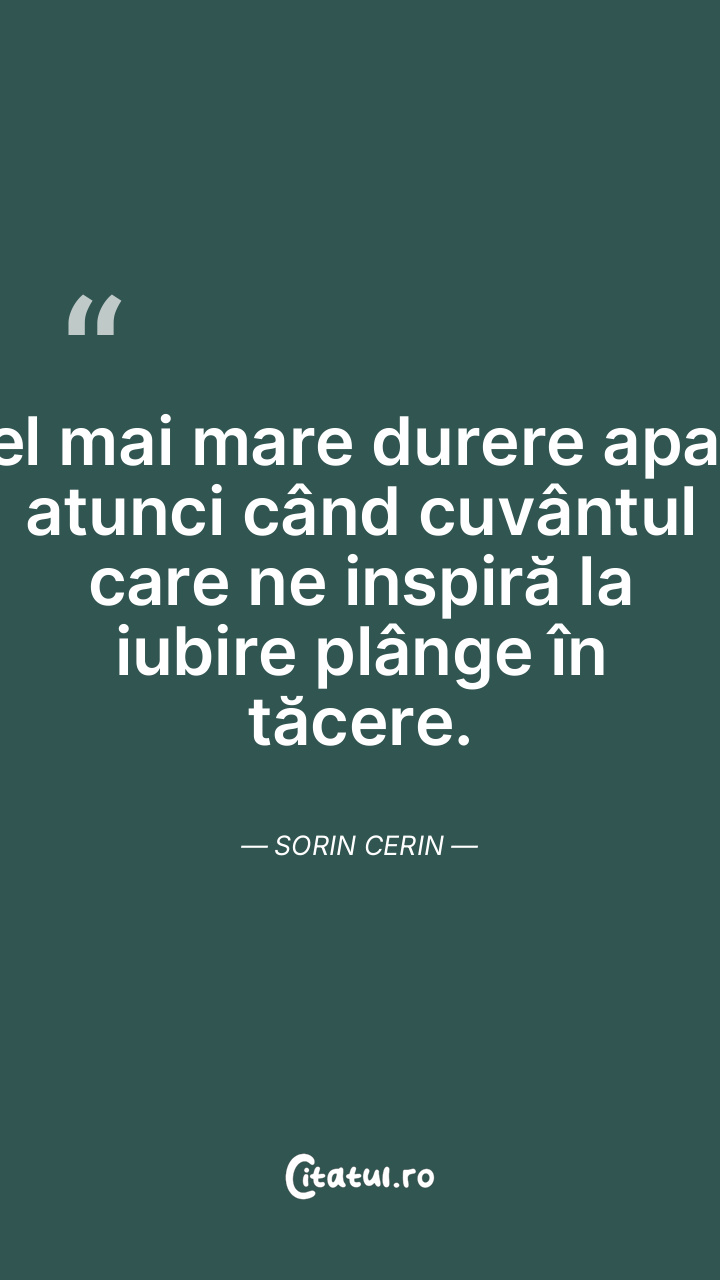 Cel mai mare durere apare atunci când cuvântul care ne inspiră la iubire plânge în tăcere. Sorin Cerin